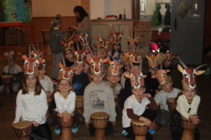 Eine Woche waren die Kinder der Grundschule im Trommelfieber, tauchten in die Geschichte des Trommelzauberdorfes Tamborena ein und erlernten unter Anleitung vom begeisternden und liebevollen Trommler Otto vom Trommelzauber die verschiedenen Trommelrhythmen, Lieder und Tänze. Der Start in den Tag begann mit einer gemeinsamen Trommelzeit der ganzen Schule. Im Verlauf des Vormittags hatte dann jede Klasse noch eine eigene Trommelzeit. Immer stand das gemeinsame Erlebnis im Mittelpunkt. Durch Zuhören und aufeinander achten entstand ein gemeinsamer Rhythmus in vielfältigen Liedern und Tänzen.