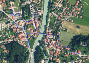 Blau markiert sind die im Marquartsteiner Ortszentrum empfohlenen Wege zur Grundschule an der Burgstraße.